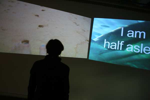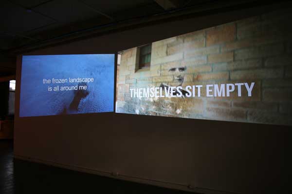 In this two channel video installation, each artist created a program of short videos exploring different aspects of memory and presence. The programs are projected side by side.
