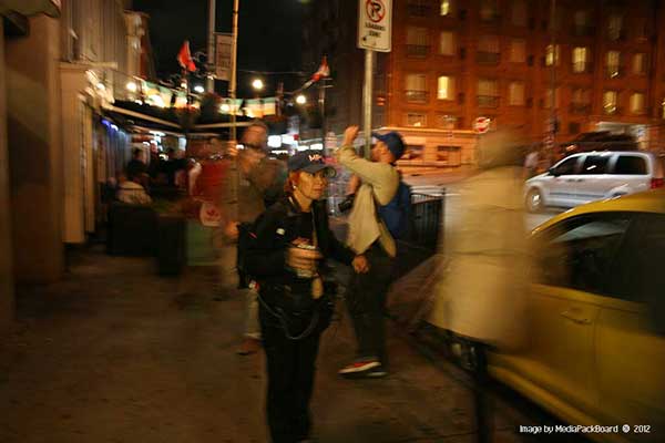 Valerie LeBlanc carrying the MPB on Argyle St.